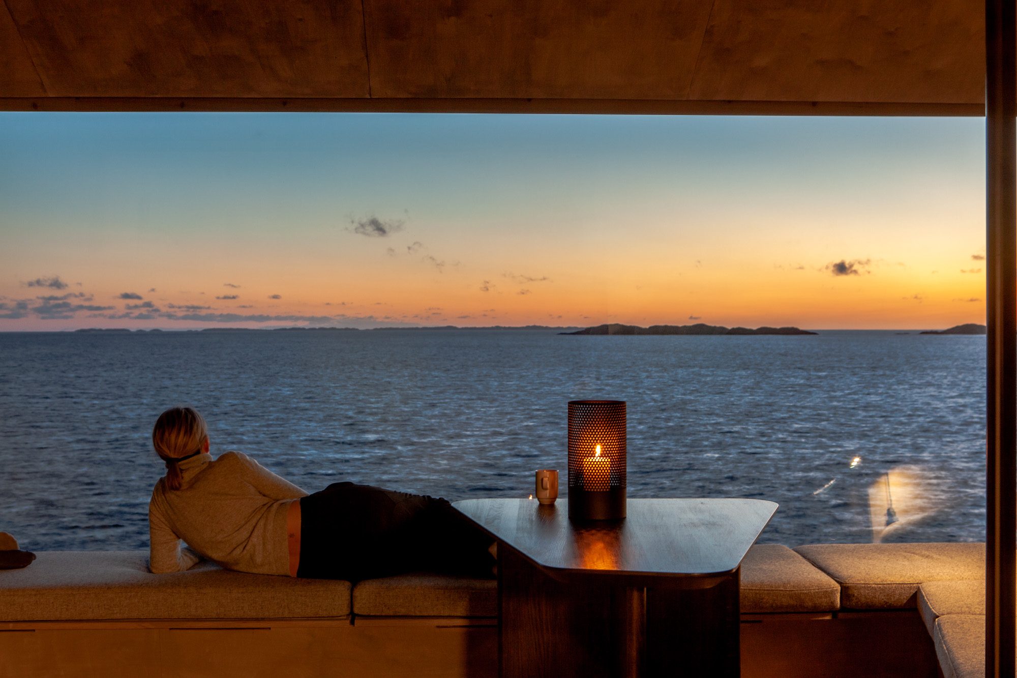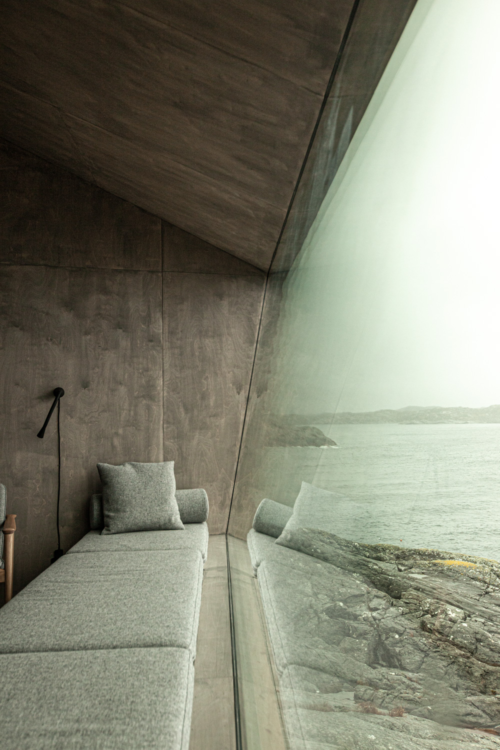 Utsikt fra et rom med tak og vegger er styrt av vindu og veggers form. Små, smale rom vil ofte styre utsikten og fokusere på et sted utenfor rommet en oppholder seg i. Dette gir en følelse av å være innestengt. Hvis en derimot først passerer gjennom et lite, smalt rom vil det neste rommet som vider seg ut i høyde og bredde oppleves desto større. Et stort vindu her vil trekke landskapet inn og fokuspunktet være fritt. En lignende opplevelse kan en få ved å vandre inn fra en solrik gate i Roma, gjennom våpenhusets mørke og inn i en gullglitrende barokkirke. Flokehyttene har en minimal størrelse, men en virkelig panoramautsikt, -her trekkes landskapet inn i selve rommet, -som om en satt i huleåpningen og så ut.