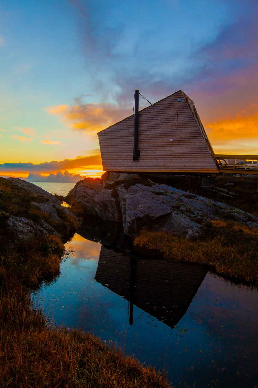 Med «Flokene» på berget vil kursdeltakere, gående, syklende, padlende, kjærester og ellers de som ønsker det, kunne ta seg et øyeblikks opphold og se solen gå ned i havet i vest en stormfull høstkveld eller en vindløs sommeraften.