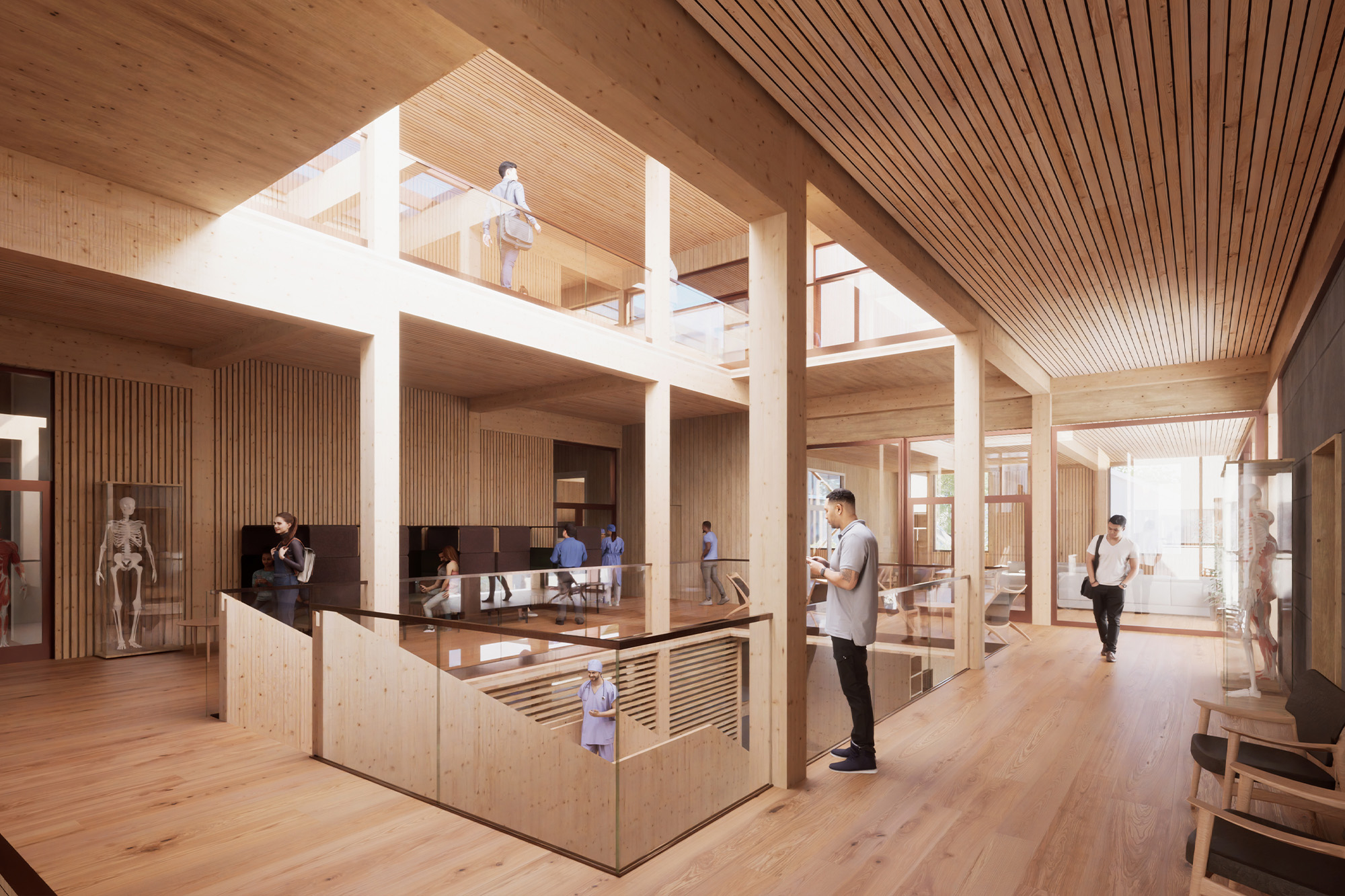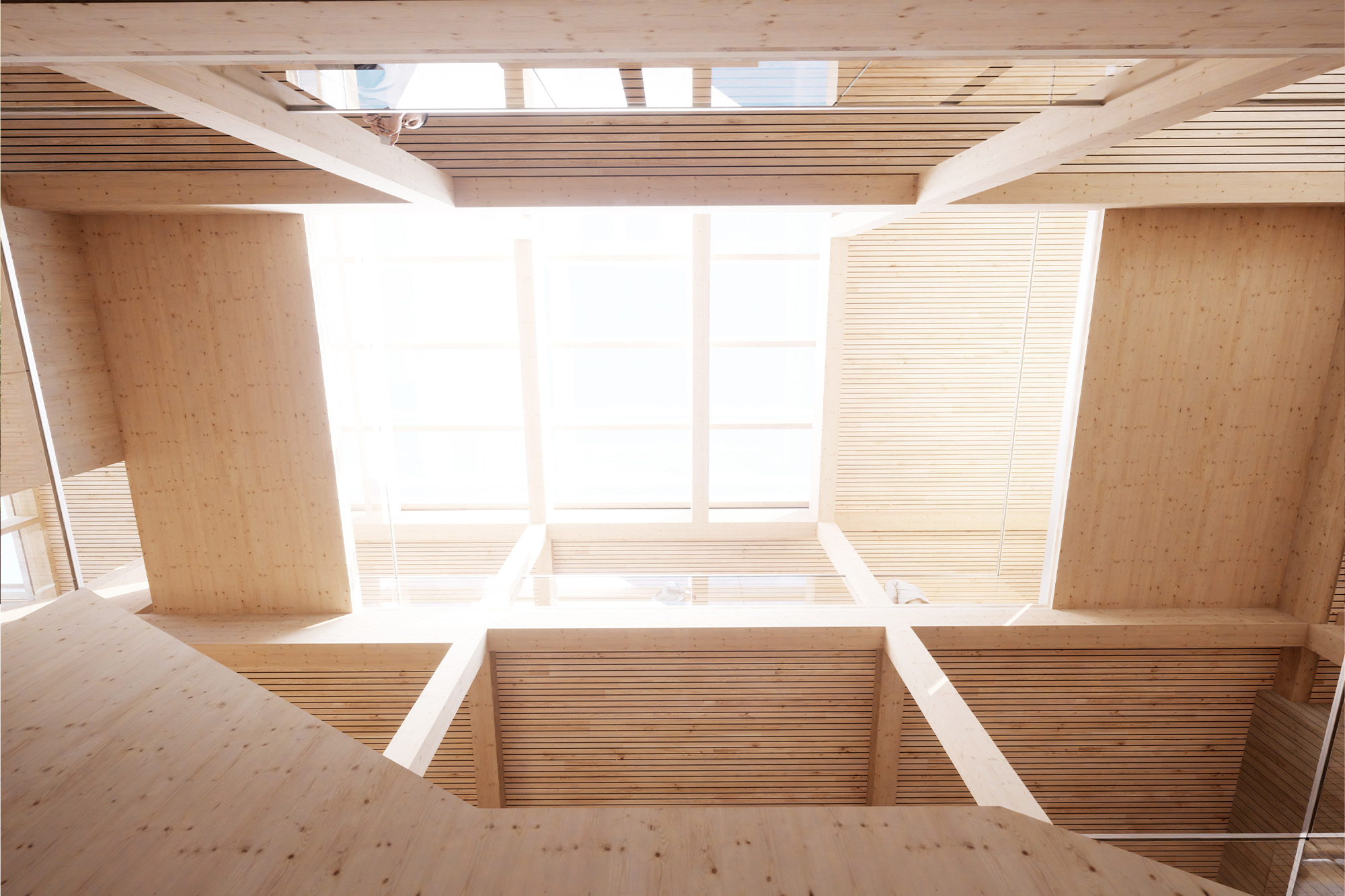 Byggets primærkonstruksjoner er valgt løst i massivtre; med søyler/bjelker i limtre og dekker av KL-tre. Dette gir stor fleksibilitet i bygget. For de delene av bygget som ligger under bakkenivå er det valgt et system med søyler/bjelker, vegger og dekker i lavkarbonbetong. Bæresystemet er valgt med bærekraft i fokus – både med tanke på miljø og fornuftig materialbruk, men også for å ivareta god økonomi i prosjektet.