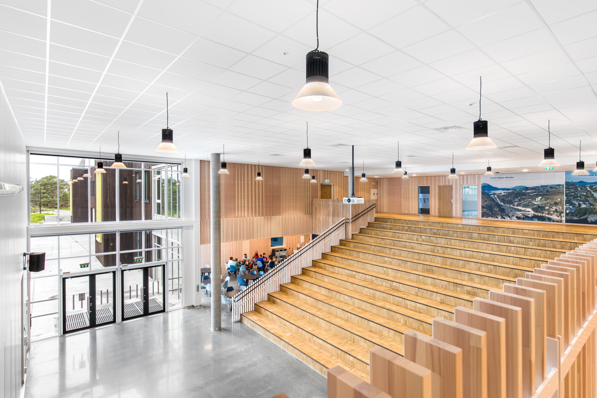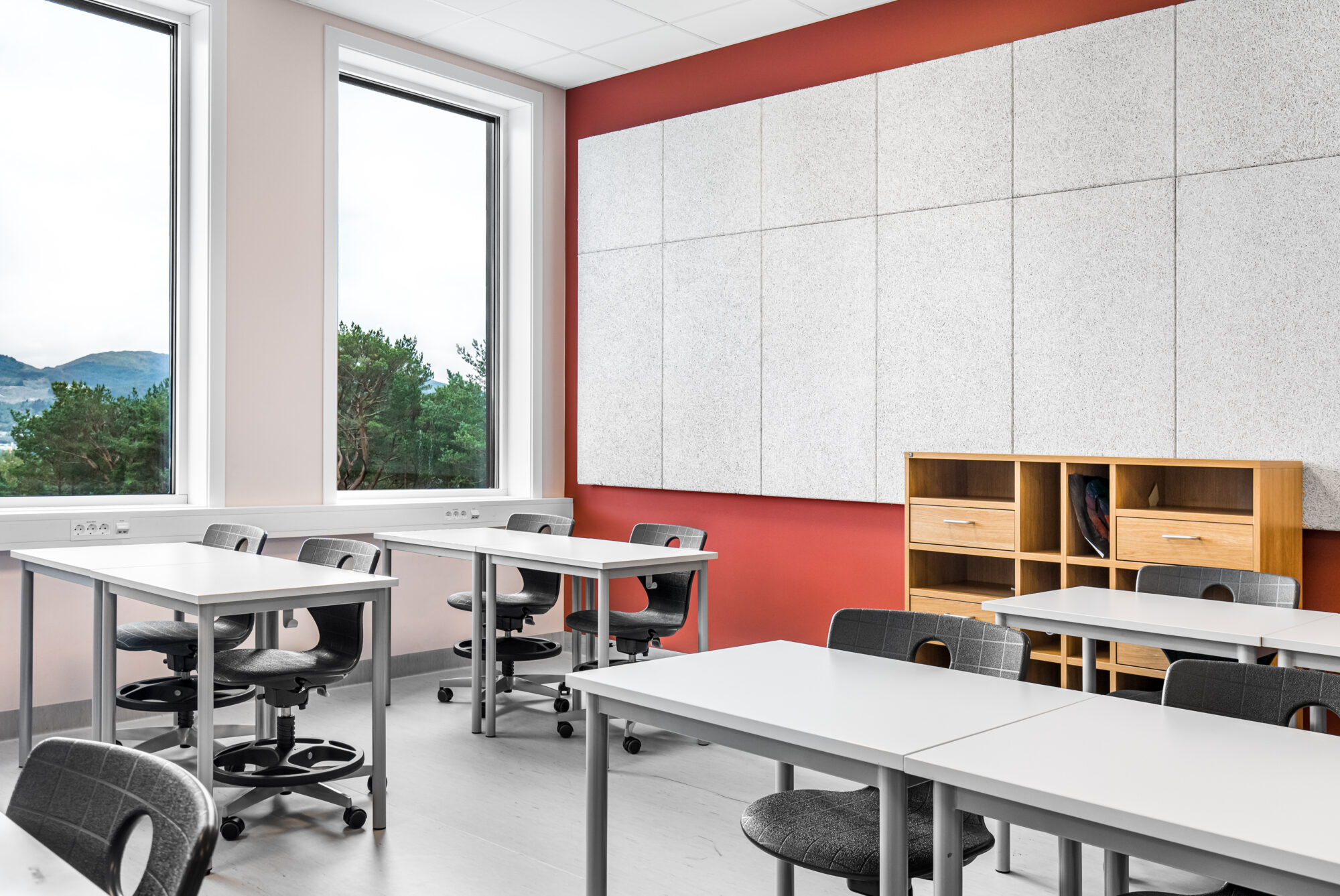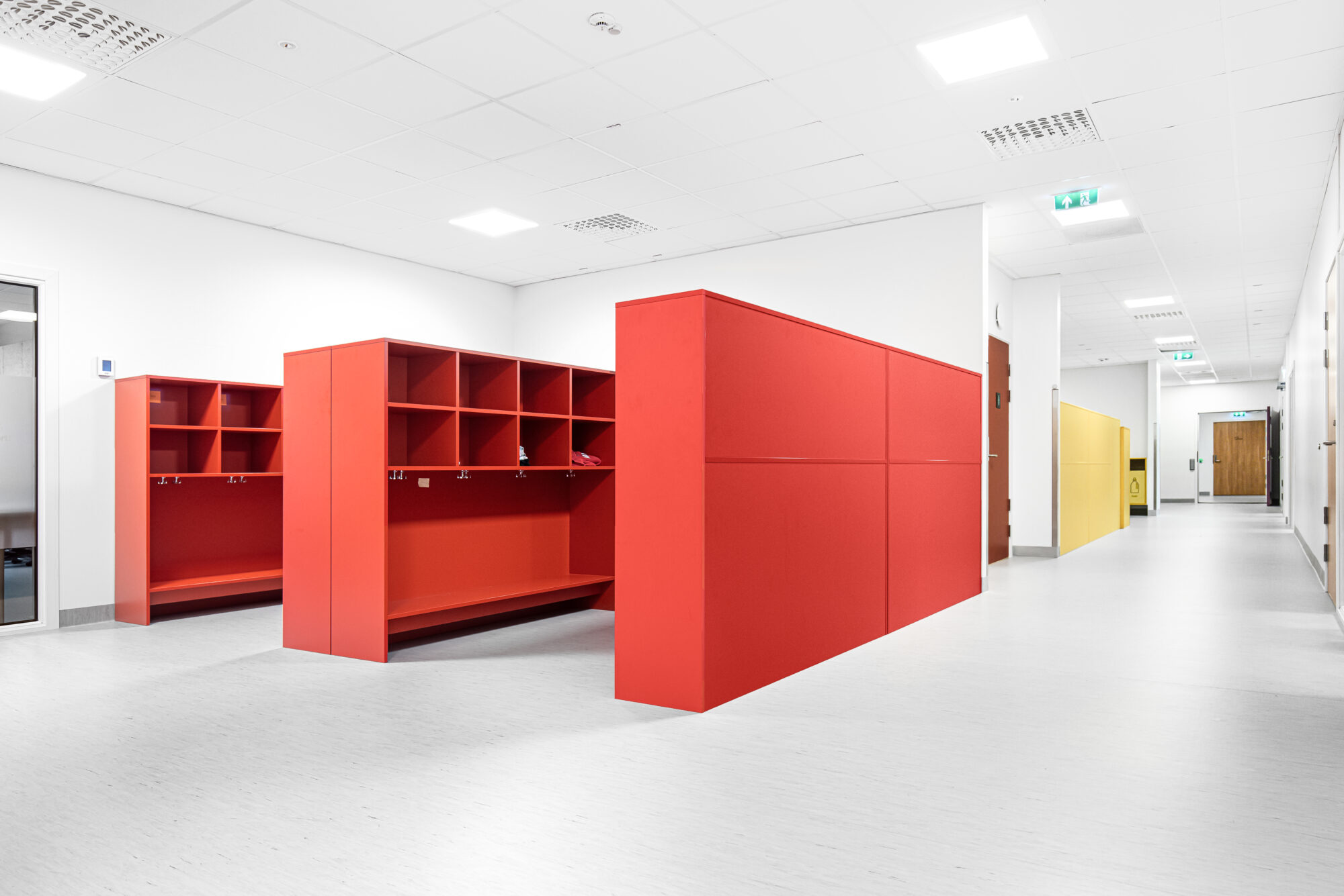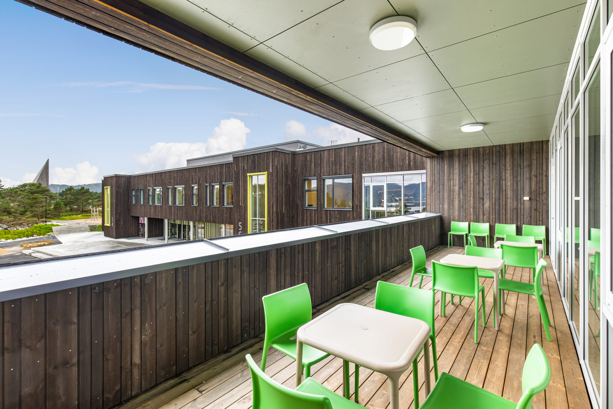 Vi har også integrert en egen avdeling for Lindås Læringssenter i skolens design. Læringssenteret har sin egen inngang, men er samtidig nært tilknyttet skolens øvrige funksjoner. Denne løsningen balanserer behovet for skjerming og integrering, slik at læringssenteret både kan være en del av skolens daglige liv og fungere som en egen enhet når det er nødvendig.