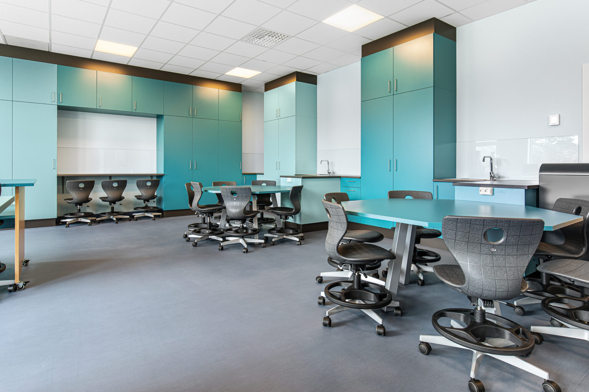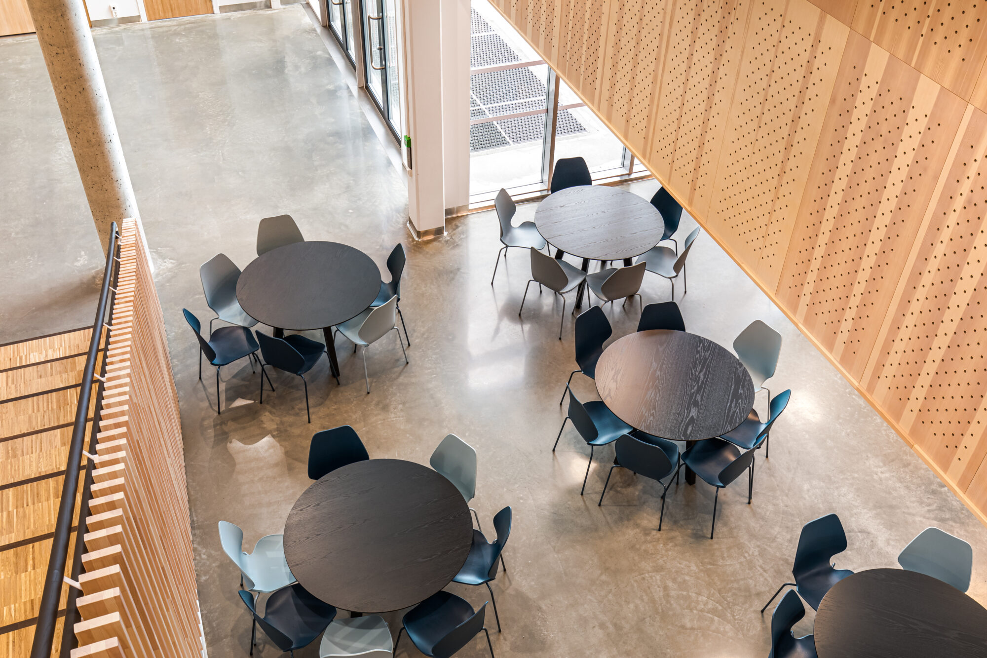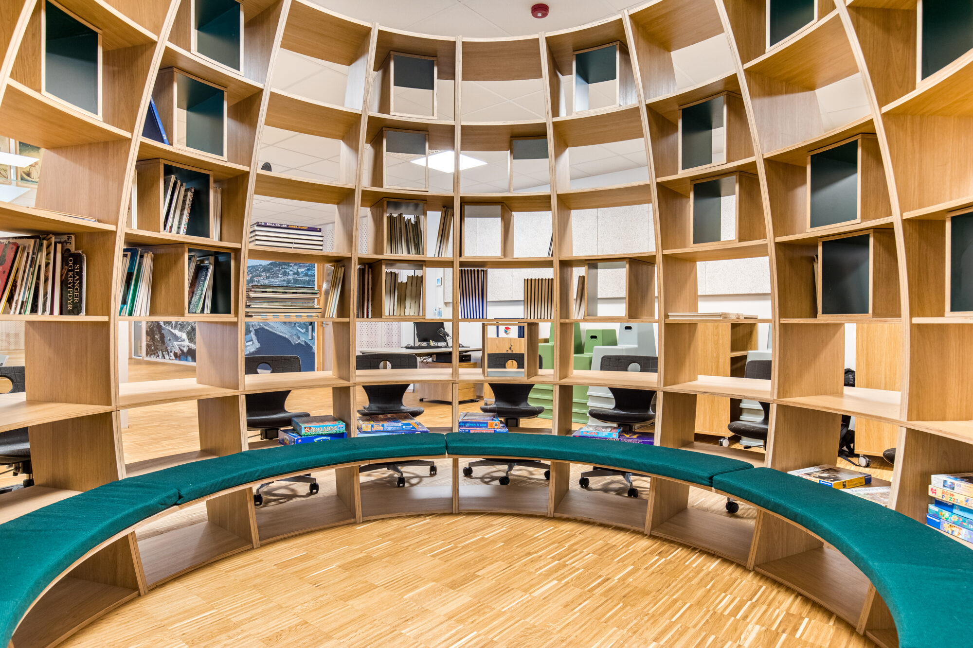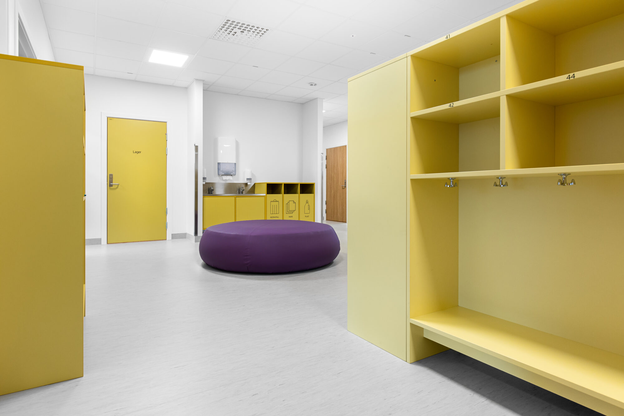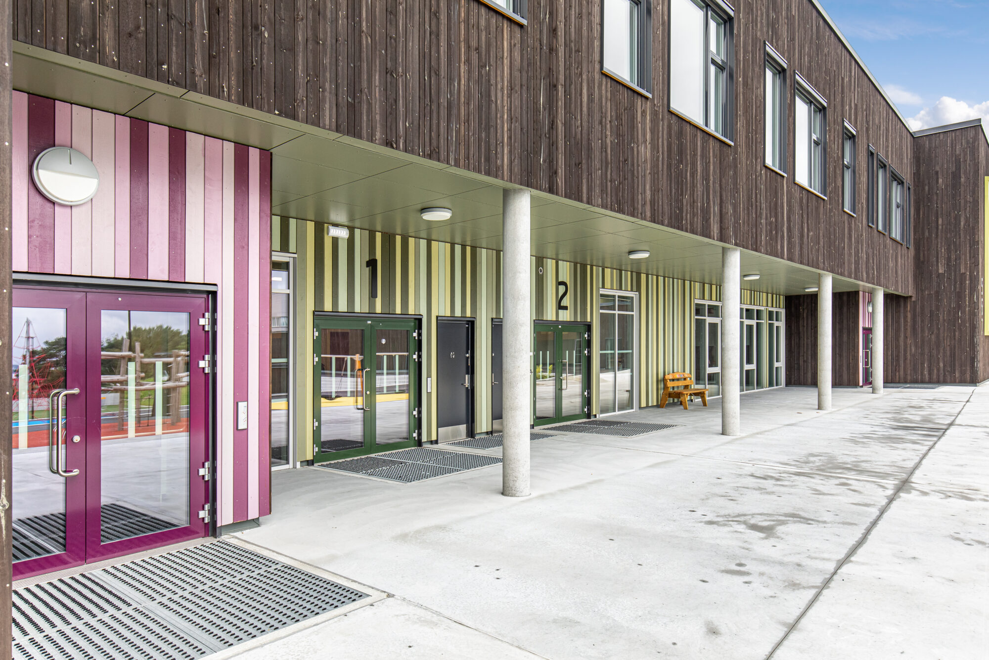 Vi har også integrert en egen avdeling for Lindås Læringssenter i skolens design. Læringssenteret har sin egen inngang, men er samtidig nært tilknyttet skolens øvrige funksjoner. Denne løsningen balanserer behovet for skjerming og integrering, slik at læringssenteret både kan være en del av skolens daglige liv og fungere som en egen enhet når det er nødvendig.