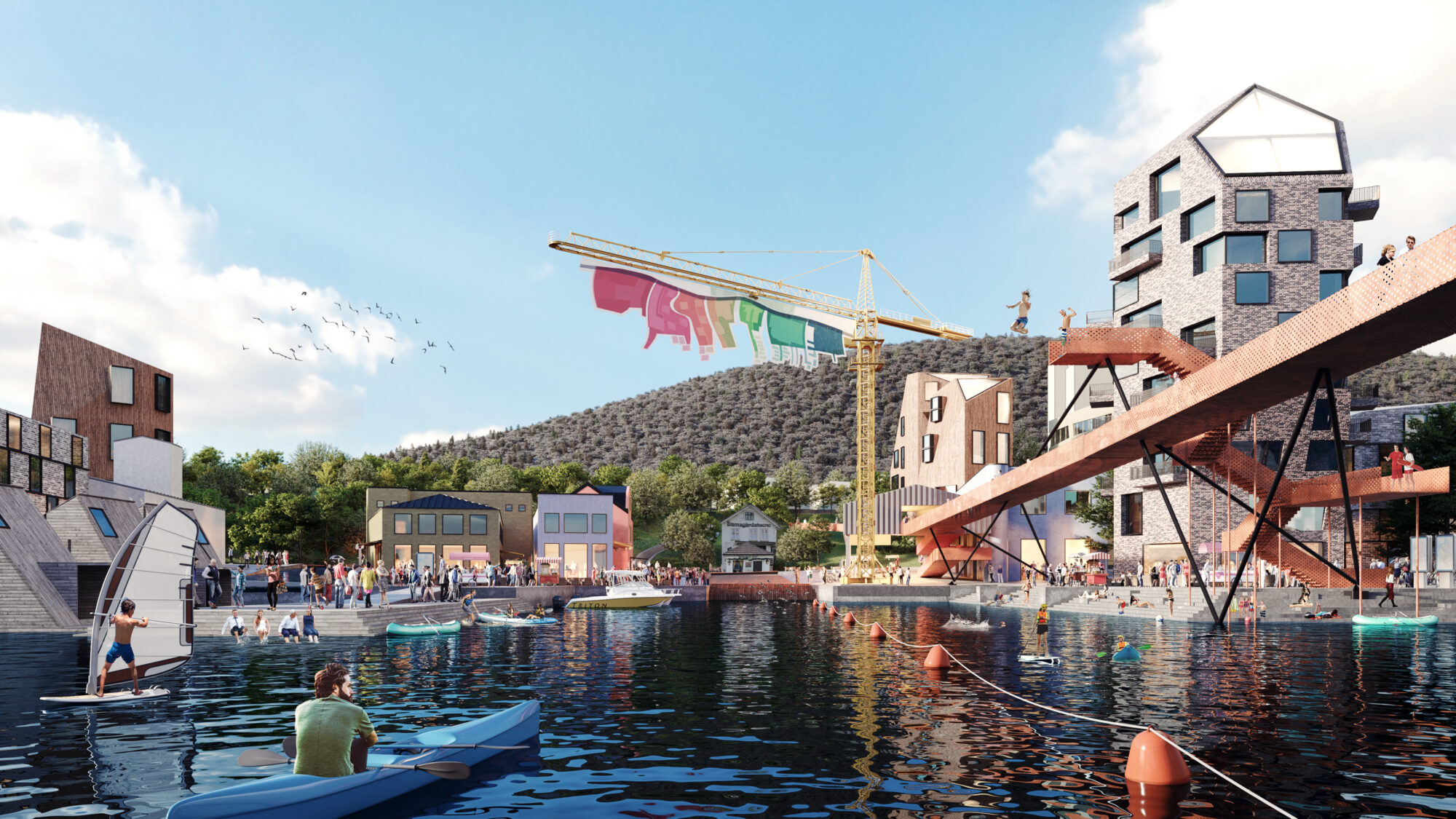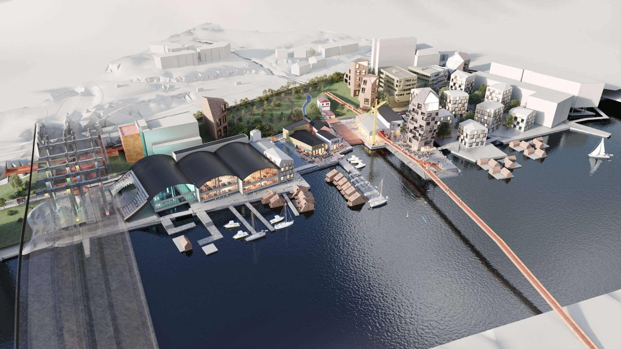 Vi ønsket å rendyrke og videreføre kvalitetene i eksisterende bygg og strandlinje. Slik trekkes linjene mellom historie og nåtid og hjelper oss å lese utviklingen i området. Samtidig ville vi benytte muligheten til å vise kontraster mellom høy og lav