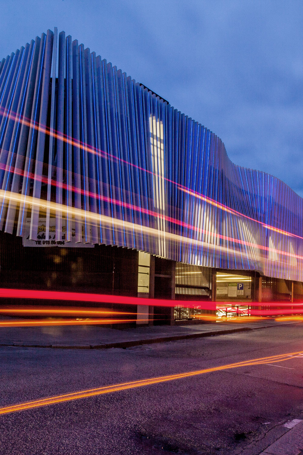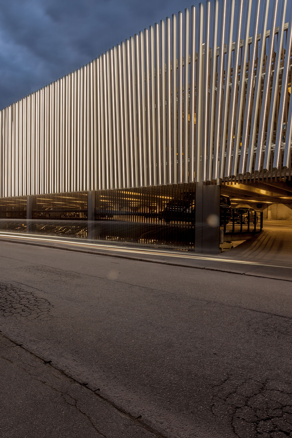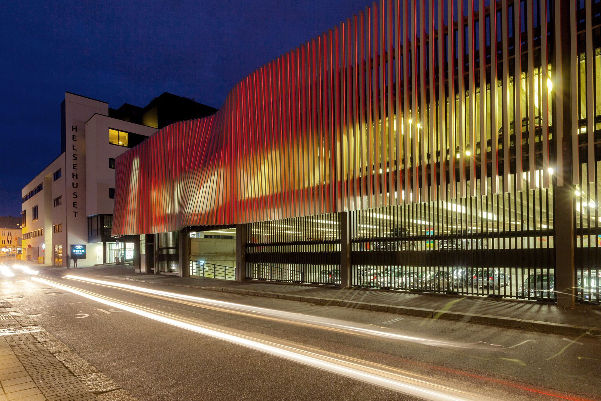 Parkeringshusets store størrelse og «døde» funksjon ga lite tilbake til gatelivet, og det ble derfor ønskelig med en noe mer «aktiv» fasade som kunne være med på å løfte opplevelsen. Gjennom differensiert materialbruk og inndeling av byggets fasader ønsket vi å redusere skalaen på bygget til å bedre passe inn i den lokale konteksten og til menneskene som skulle ferdes i og rundt bygget.