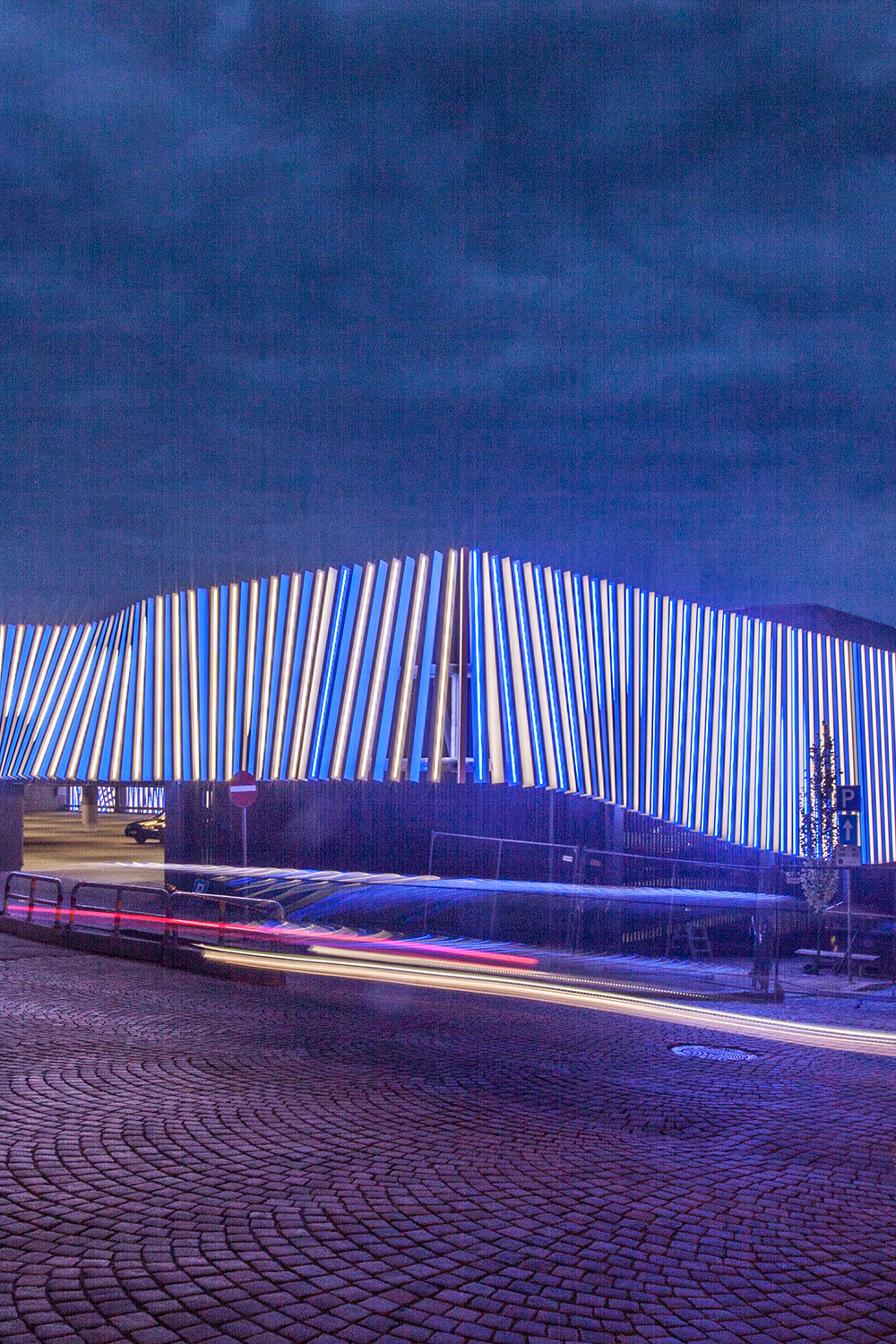 I annenhver spil i fasaden er det felt inn led-lys i hele profilens lengde på to sider. Disse lyser direkte inn på naboprofilen og gir på denne måten hele fasaden et «lystepppe» som kan understreke den bølgende bevegelsen i fasaden.