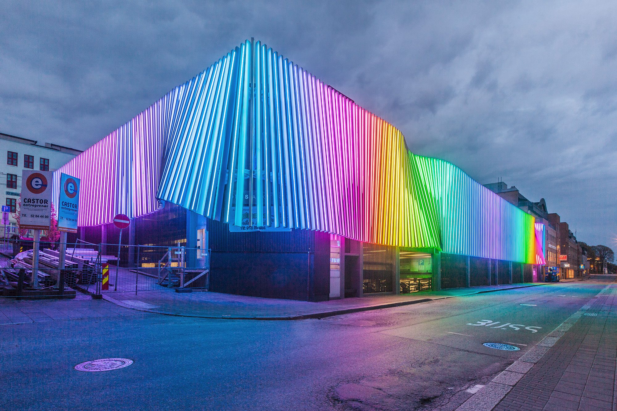 Fasaden spiller en aktiv rolle i sentrum. Gjennom lyssetting av bygget fasader kan vi formidle både spesifikke budskap, glede og engasjement som for eksempel nyttår, skt Hans aften eller Pride.