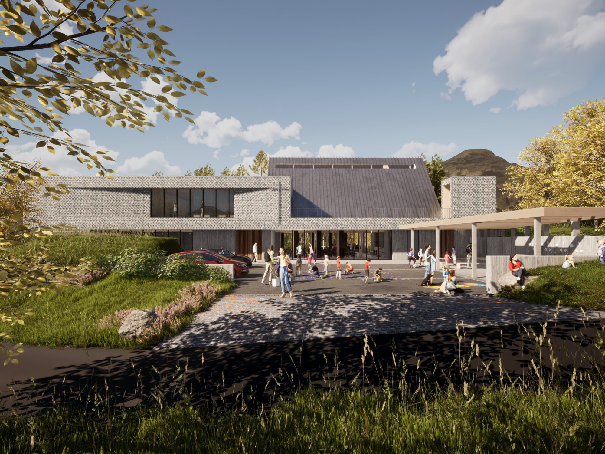HOLON ønsket å tilrettelegge for det sosiale livet for alle aldre i kirkebygget, samt mellom kirkebygget og fremtidig sentrumsbebyggelse i Sædalen. Kirketomten har åpenbare naturkvaliteter, og spesielt i overgangen mot naturen og friluftsområdet i nord/ nordvest tilrettelegger prosjektet for fine aktiviteter for barn- og unge. Vi hadde også som målsetting å skape et kirkerom hvor man kunne finne naturlig ro og fred, men som også kunne være både synlig og lett tilgjengelig i sentrum av et fremtidig Sædalen. Vi ønsket at både et uformelt besøk i kirken og deltagelse i kirkelige handlinger skulle gi en god fellesskapsfølelse.