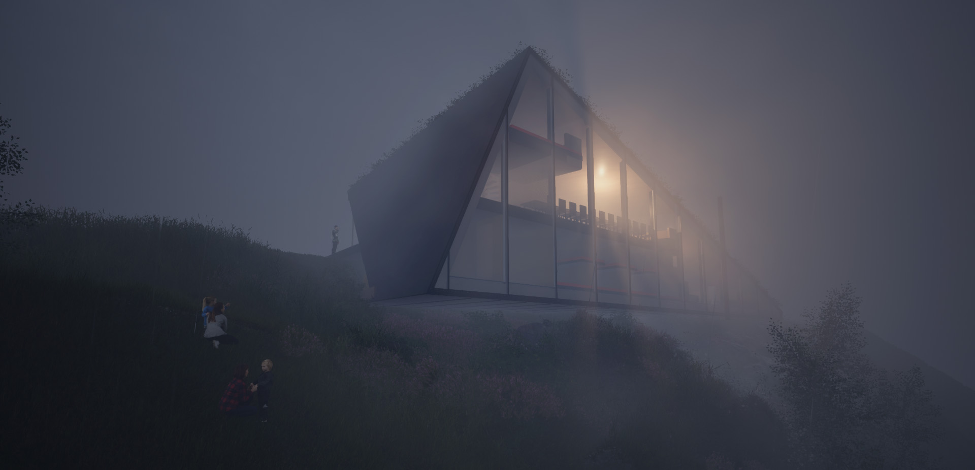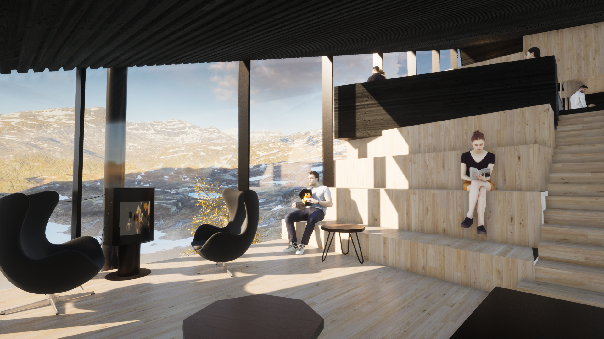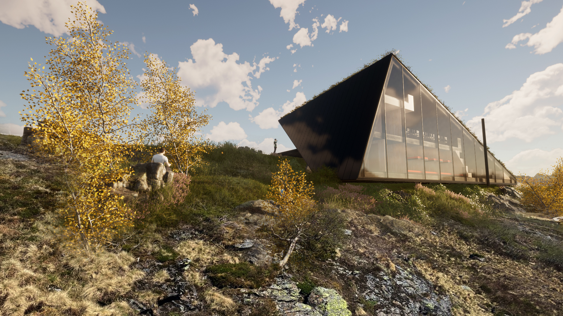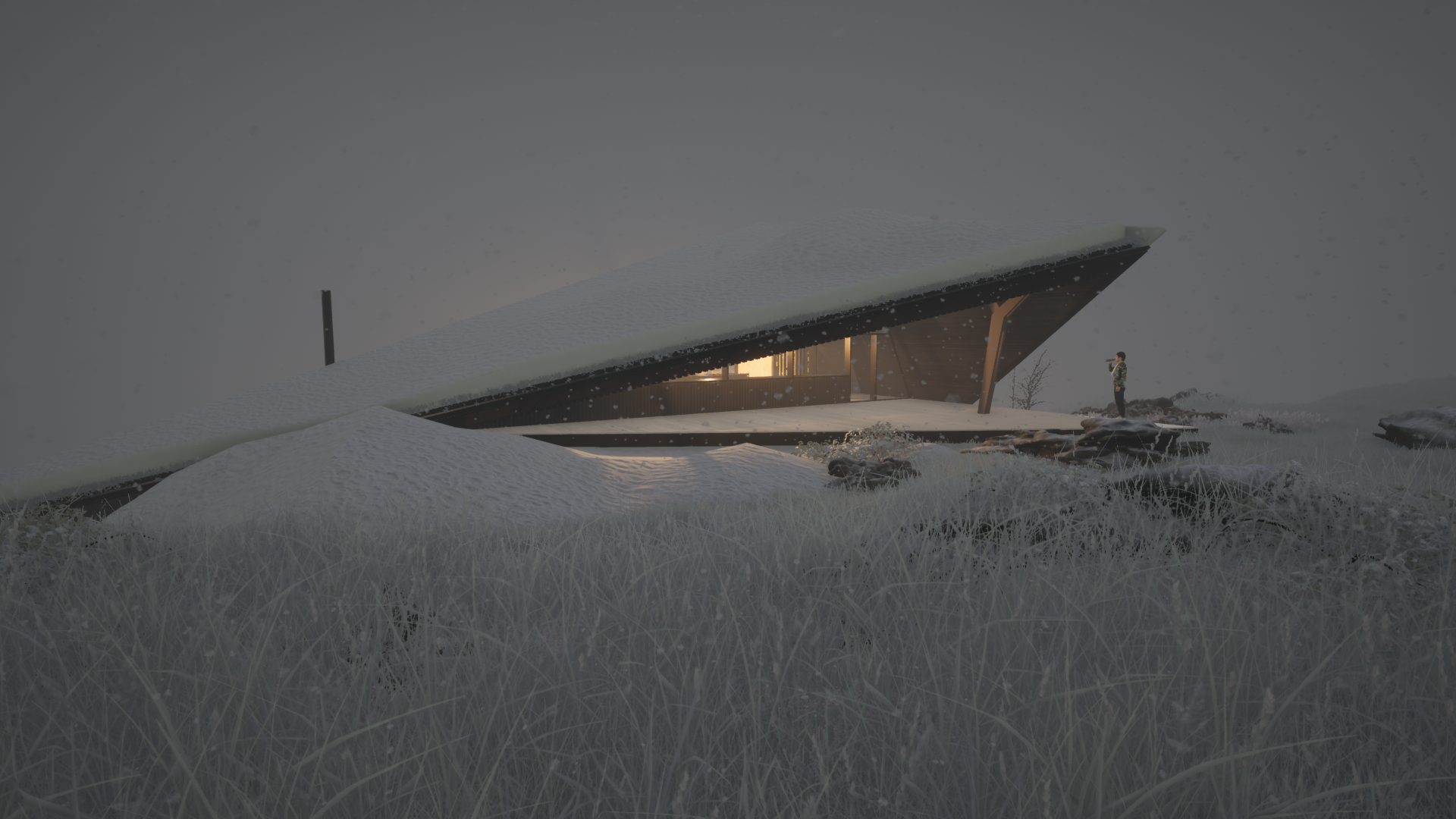 Når Haugesund Turisforening utlyste en konkurranse om en ny turisthytte, gikk vi løs på oppgaven med en påstand om at: Haugesund Turistforening er tjent med å gjøre nye Simlebu til et ikonisk bygg du forstår i lag etter lag, som har en x-faktor, som elsker mennesker og fremstår som et naturelement, som blir noe du går inn i for å oppleve natur, som skjermer deg og gir en intim ramme rundt møtet mellom mennesker.