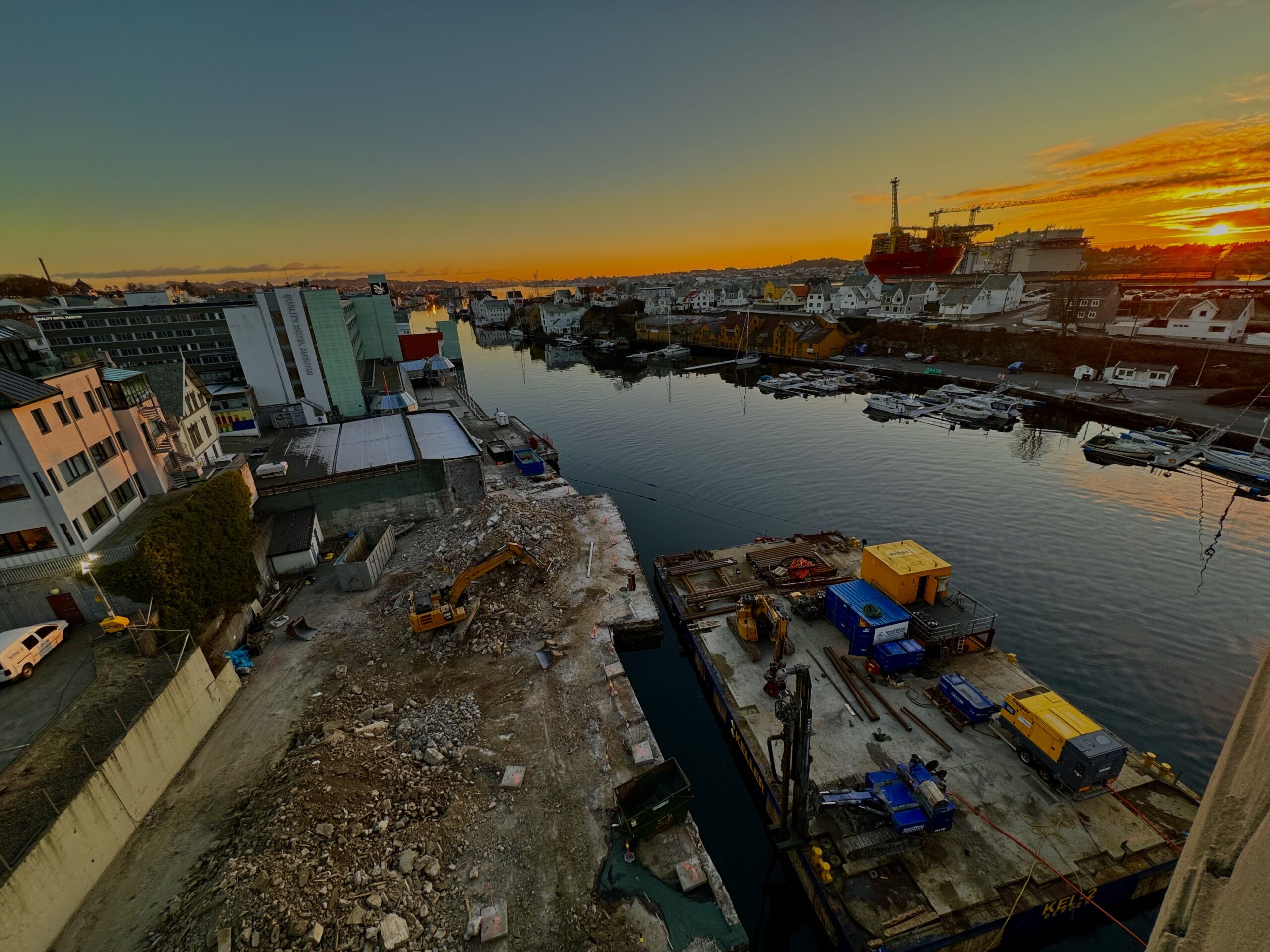 Vi gleder oss over oppstart på S77, som vil bli et av de viktigste nye byutviklingsprosjektene i Haugesund. Dette bygget får rundt 8000kvm næringsareal og innfører en nye forbindelser mellom Strandgata og Indre kai.